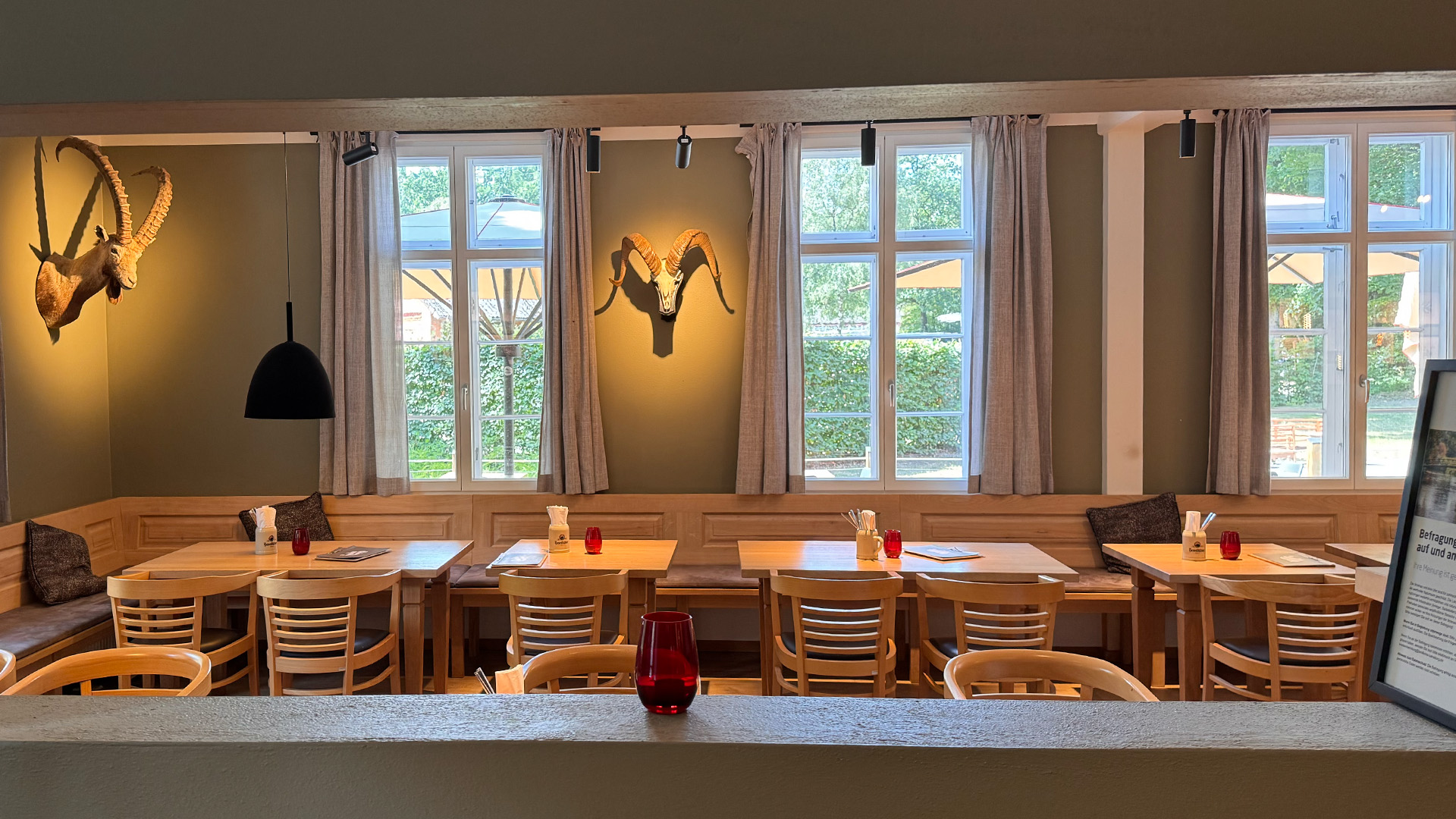 Hier isst das Auge gleich mit – stilvoller und moderner Gastraum Forsthaus-Stil.