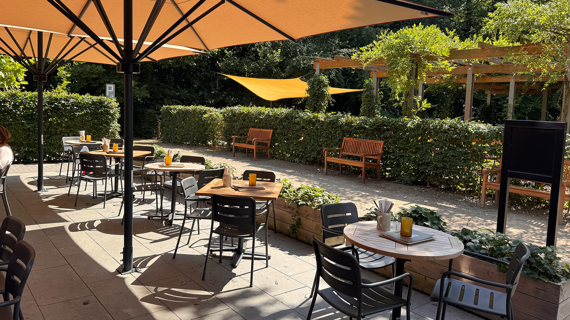 Auf der gemütlichen Terrasse unter Sonnenschirmen und im Biergarten lässt es sich herrlich entspannen.