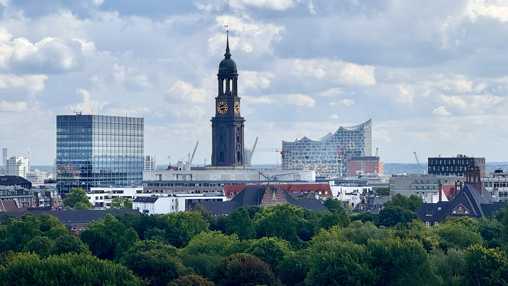 Spektakulärer Rundumblick über Hamburgs Skyline – Elbphilharmonie und Michel.