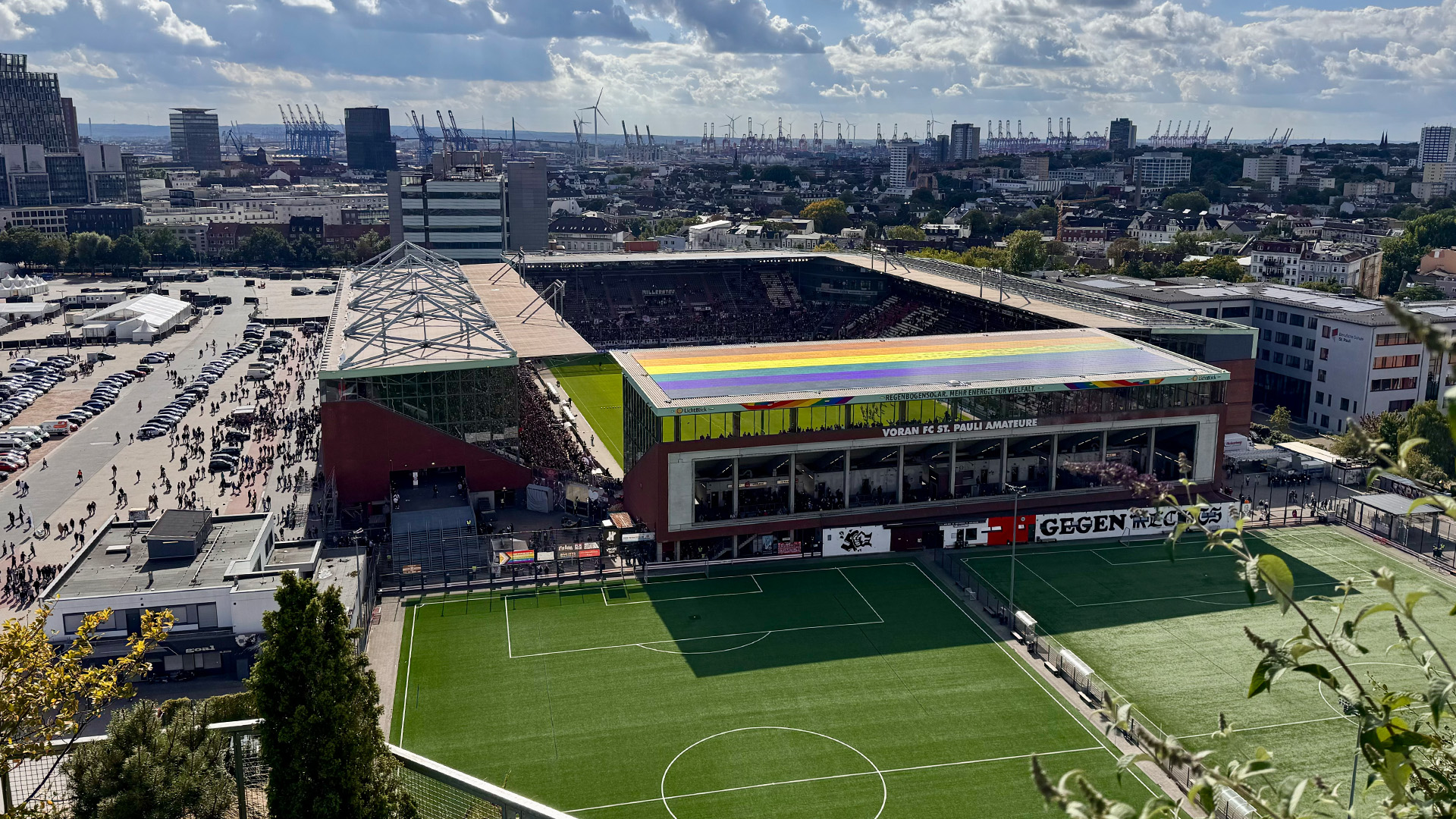 Direkter Blick auf das Millerntor-Stadion – Heimat des FC St. Pauli.