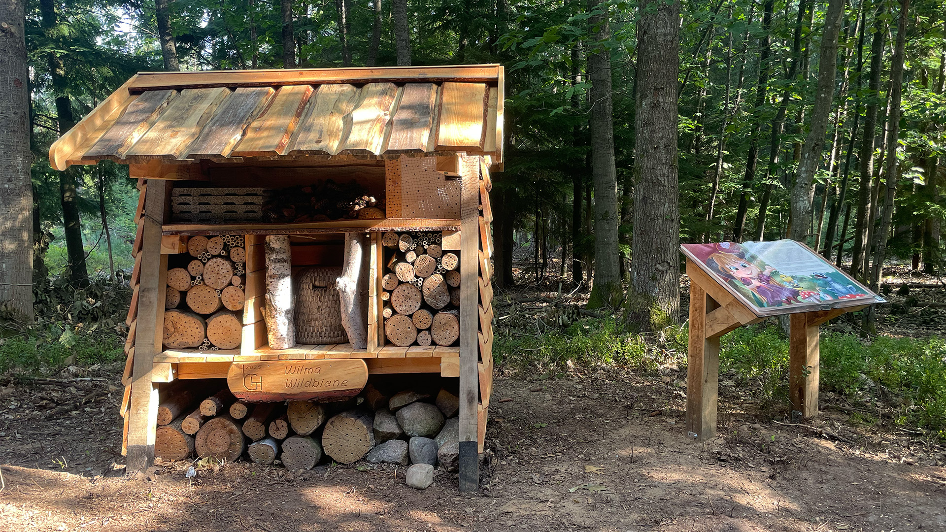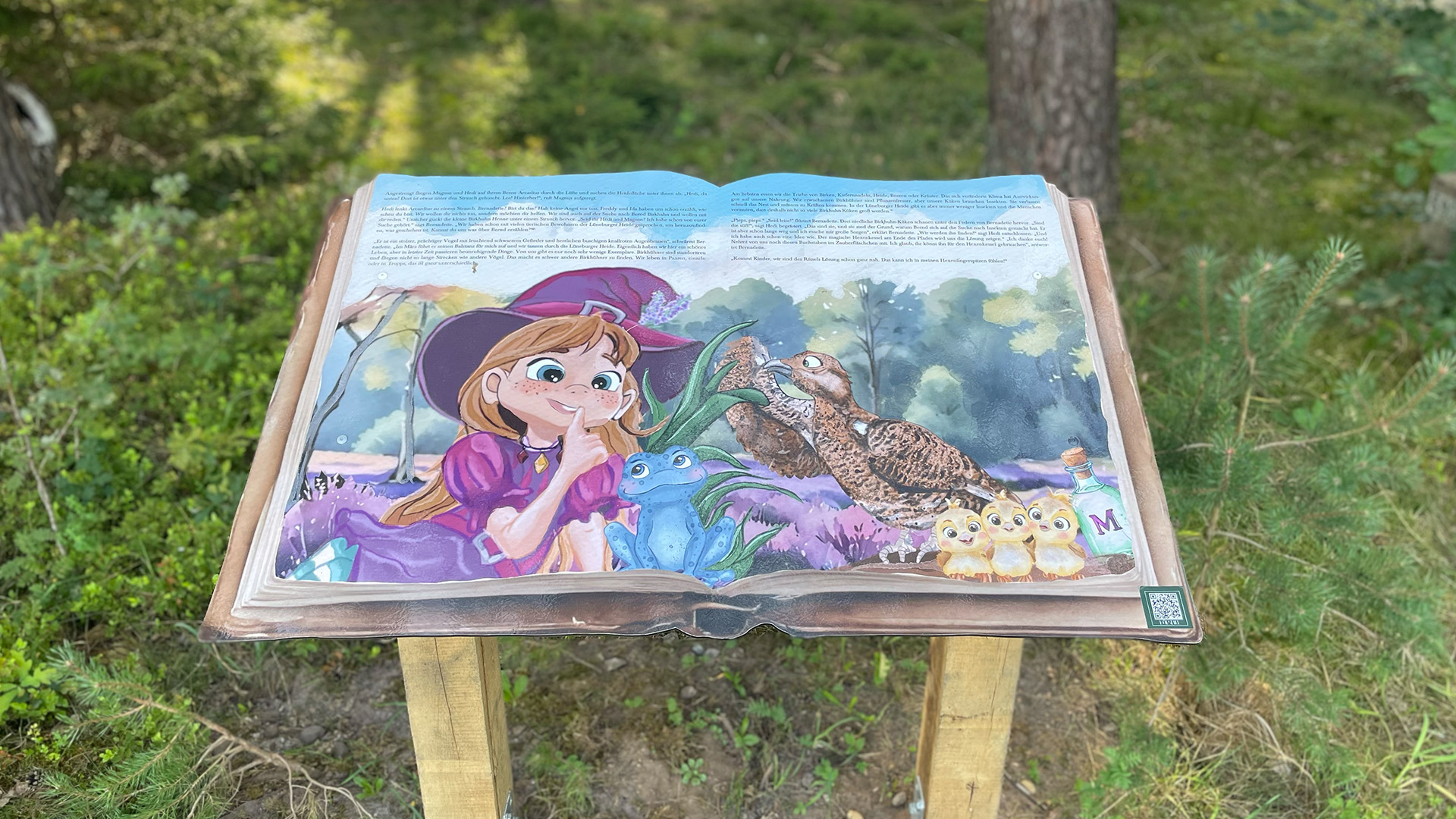 Verschiedene Stationen erzählen die Geschichte von Hedi und ihren Freunden. Diese kann auch durch scannen eines QR-Codes über das Smartphone, gehört werden.