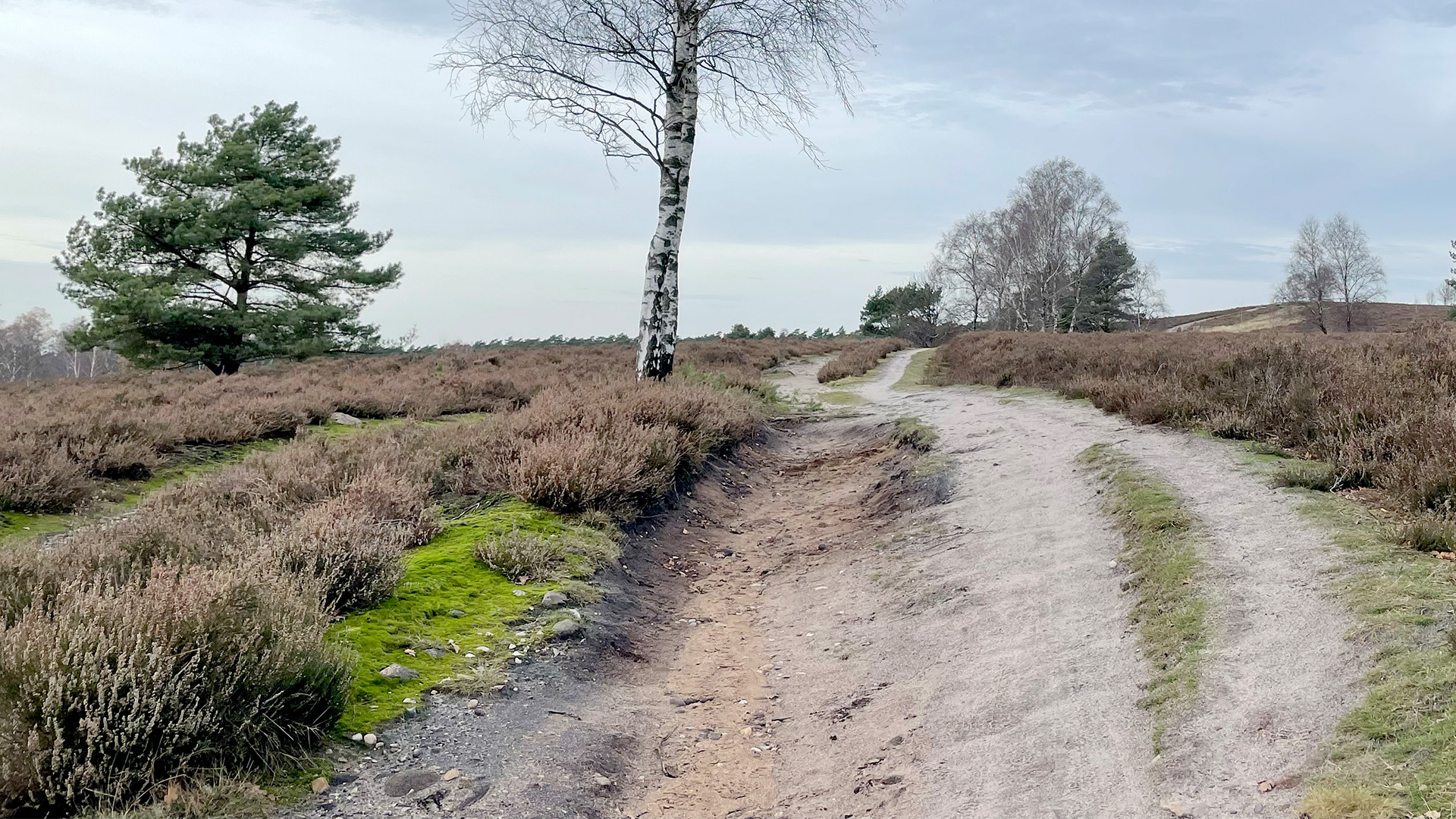 Am Brunsberg geht’s richtig los – hier startet die Heideschleife, ein 13,4 Kilometer langer Rundweg, der nicht umsonst als einer der schönsten in ganz Niedersachsen gilt. Und das merkt man sofort: Kaum ein paar Schritte gelaufen, wechselt die Landschaft schon wieder. Mal wandern wir durch schattigen Wald, dann wieder über offene Heideflächen, mal geht’s bergauf, mal runter ins Tal – hier wird’s nie langweilig!