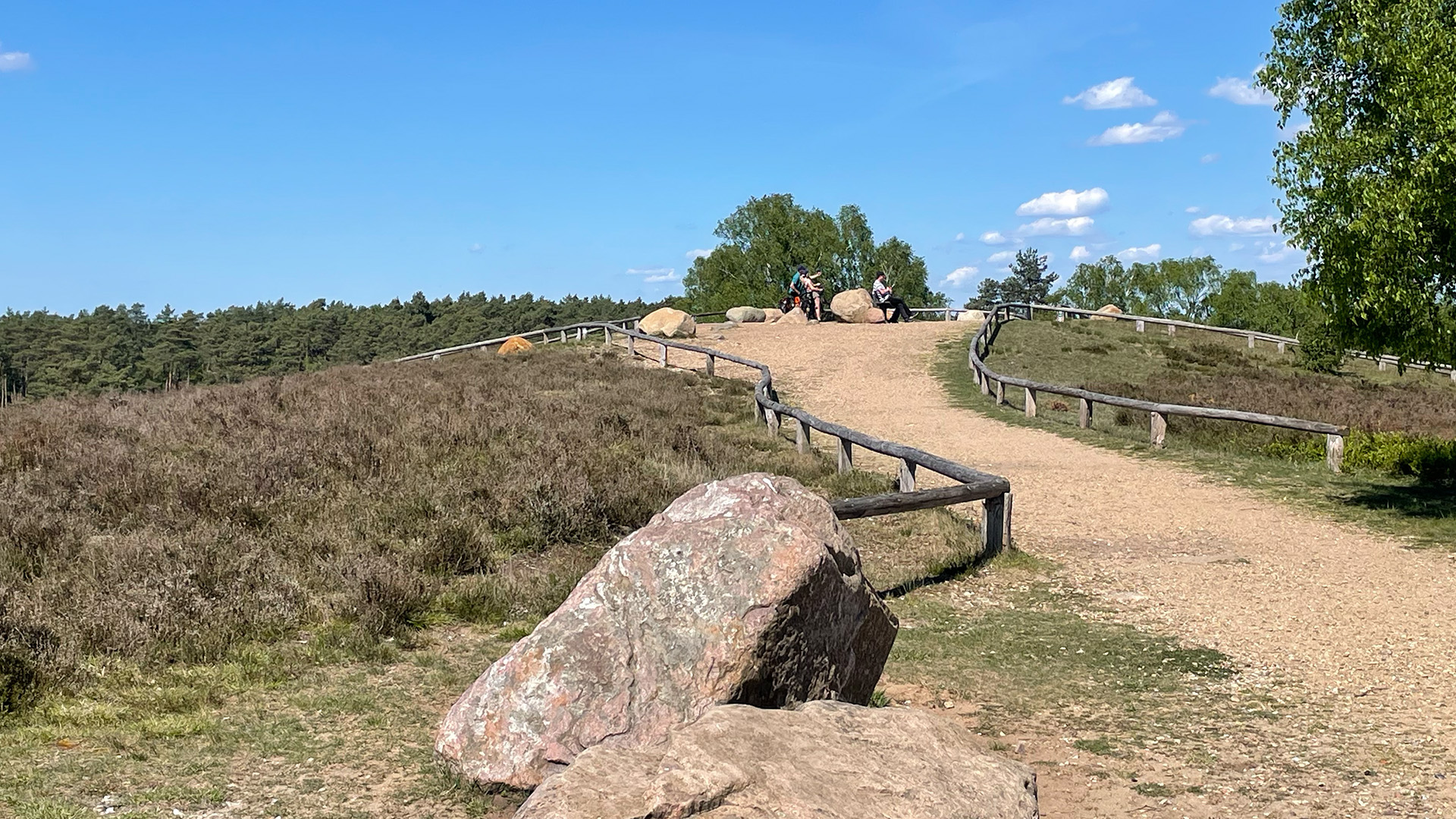Unser erster Wow-Moment war gleich der Brunsberg selbst. Mit seinen 129 Metern ist er zwar kein Riese, aber die Aussicht von oben hat uns echt umgehauen! Oben wartet ein großer Findling und ganz viel frische Luft. Weit schweift der Blick über die Heide – Naturkino vom Feinsten.
