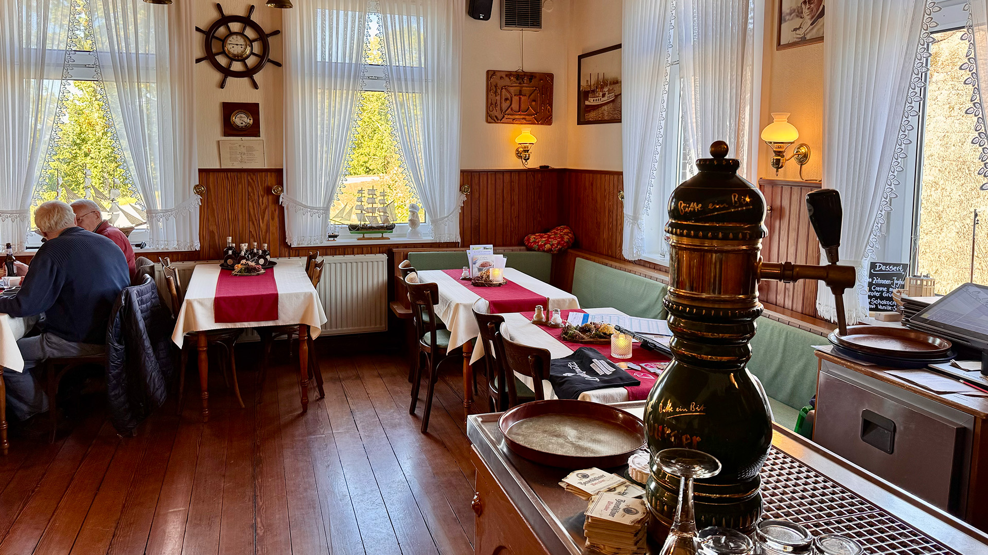 Traditionell norddeutsch eingerichteter Gastraum – gemütlich wie früher und voller maritimer Heimatatmosphäre.